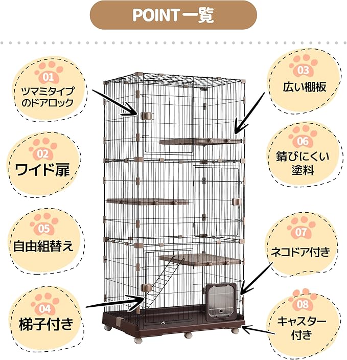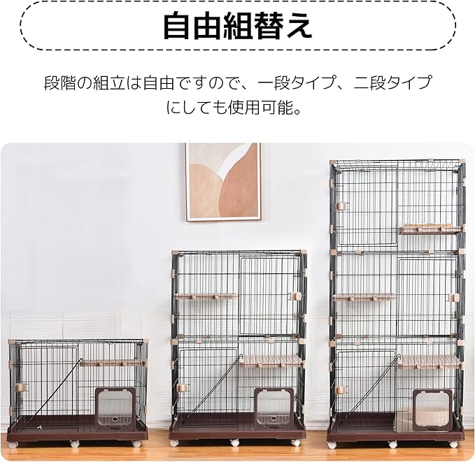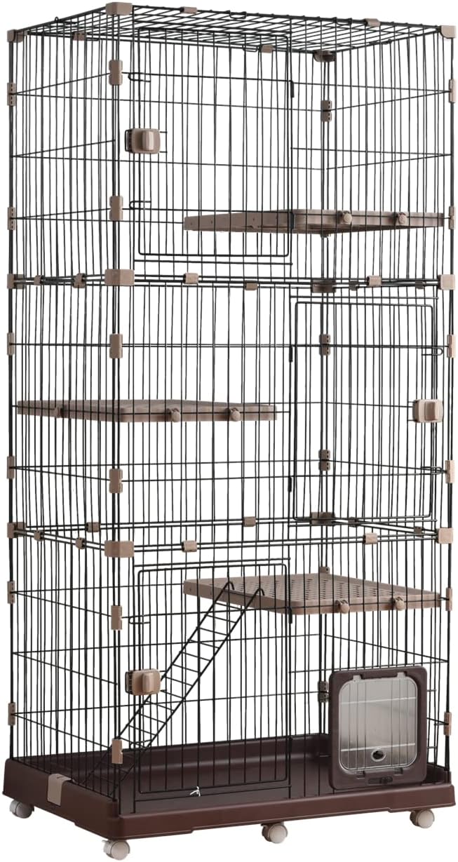 OSJ 猫ケージ キャットケージ 4段 キャスター付き おしゃれ キャットハウス 自由組み合わせ ネコハウス 留守番 梯子付き 保護 脱走防止 組み立て簡単 多頭飼い 多頭 ペットケージ【ブラウン】 | KAZESHOP