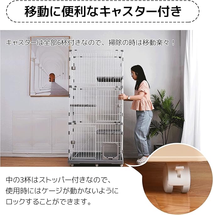 出し入れが楽になるワイド扉 全ての段に扉が付いているので、ニャンコや物の出し入れが便利になります。 また、幅36㎝ 高さ51㎝の広い扉でトイレなどの設置も簡単に行えます。