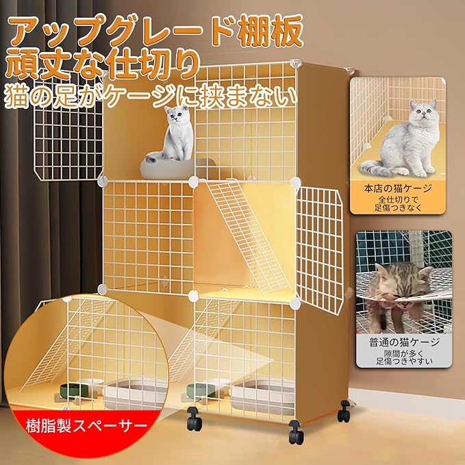 UYTON 猫ケージ子猫用ケージ 二列 3段(75x36x114.5cm) 猫ハウス 室内用猫のゲージ 大きめ動物ケージ 大型猫用ケージ 多頭飼い猫(商標出願済2020-109047) 折り畳み式 移動便利 組立簡単 取り外し可能なペット用品 室内飼い DIYケージ組え 組み換え自由な棚板お手 快適なスペース 猫脱走防止扉キャットケージ 3段(イエロー) | KAZESHOP