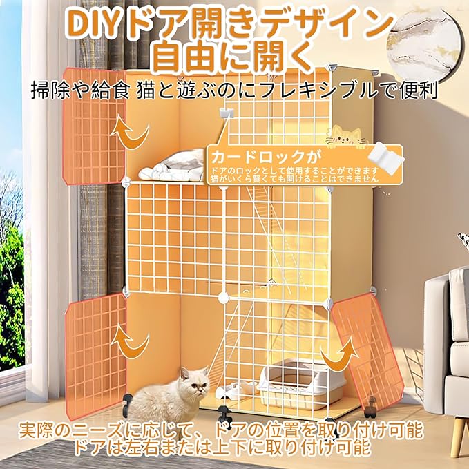 【組立簡単】自己DIYでケージを作ることができ、追加の工具なしで自由に組み立てることができる。また、猫の大きさに合わせて、状況に応じて組み立てることができます。組み立ては簡単で、ケージは広々として快適で、掃除もしやすいです。ケージは取り外し可能で、持ち運びやコンパクトな収納にも便利です。様々なペット用品を入れます。