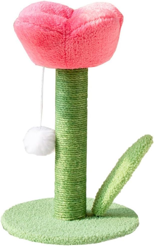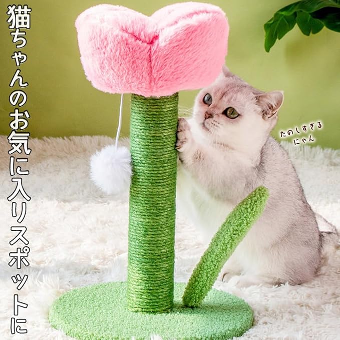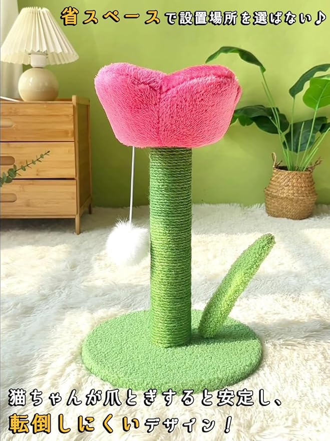 moin moin 猫 爪とぎ チューリップ ピンク 高さ40 直径25cm 花 フラワー スクラッチポール タワー 可愛い インテリア 天然 麻 自然素材 安定 頑丈 長持ち 縦型 縦置き 組み立て簡単 運動不足 ストレス解消 2410cscr3 | KAZESHOP