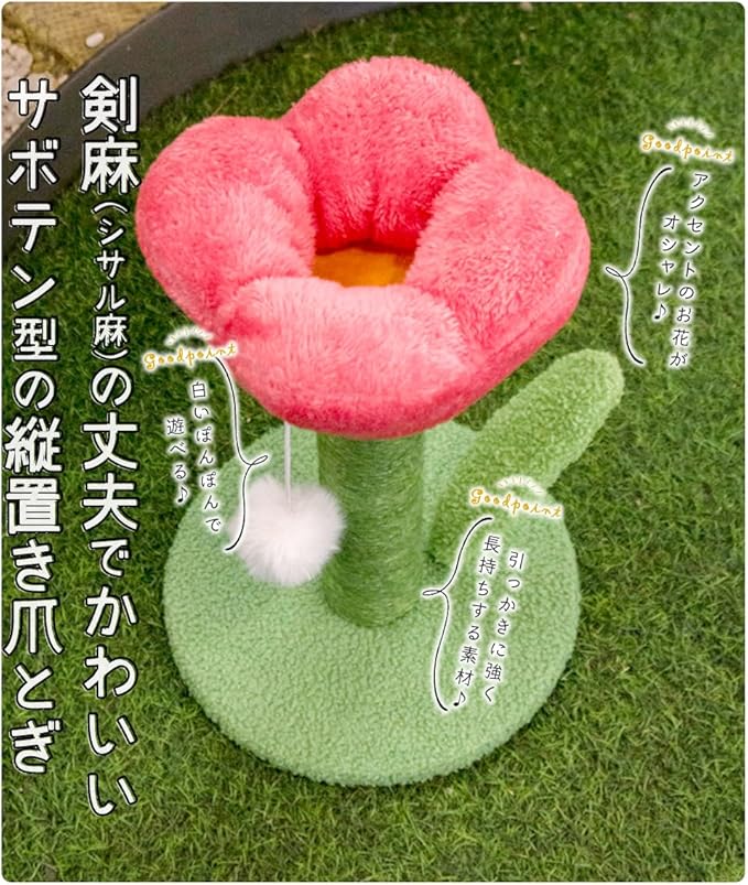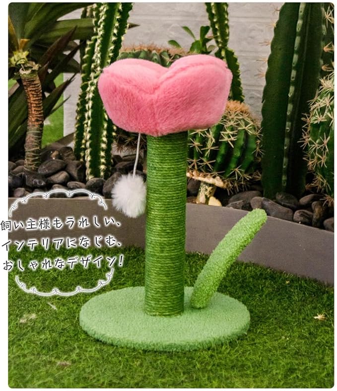 【華やかな花形デザインでインテリアにも最適】 可愛らしい花のデザインが特徴的で、お部屋のアクセントにもぴったりです。上部の花と底部の葉が猫ちゃんの遊び場としても楽しめ、インテリアとしても大変人気です。