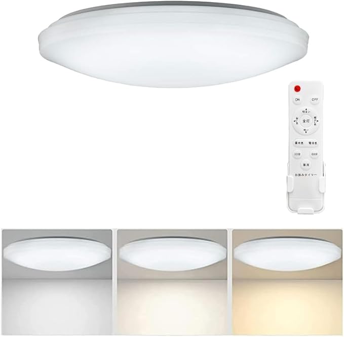 【タイマー機能 & 記憶機能】:LEDシーリングライト 6畳には専門のリモコンが付いています。★タイマー:自動消灯時間(30分/60分)を事前に設定することもできます。夜間の電気の消し忘れによる無駄遣いを防ぎます。★記憶機能:消灯時に自動的に輝度と光色を記憶し、再び点灯すると、直ちに消灯時の輝度と光色に入る。