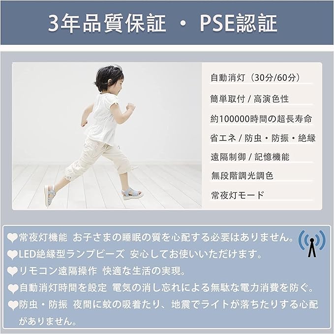 【無段階調光調色 & 改良常夜灯モード】:長く押すと2700Kから7500Kまでの無段階の調整が可能です。光の色や明るさの自由度を高め、眼精疲労を防ぐことができます。寝室、キッチン、 玄関、洗面所など様々な場所に適しています。★常夜灯モードは女性の夜間授乳や視力の低下した老人、病人に最適です。お客様の各種照明の需要を満たします。