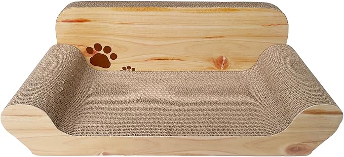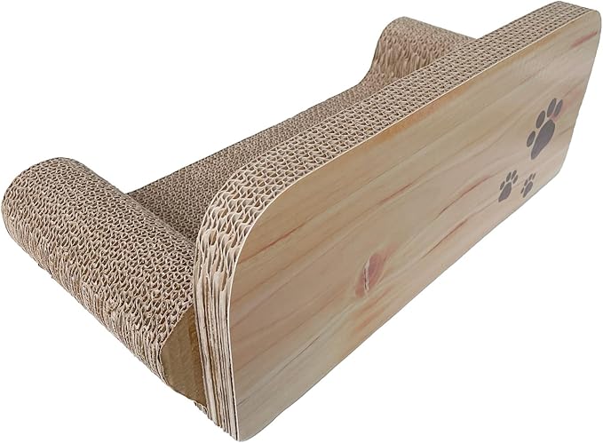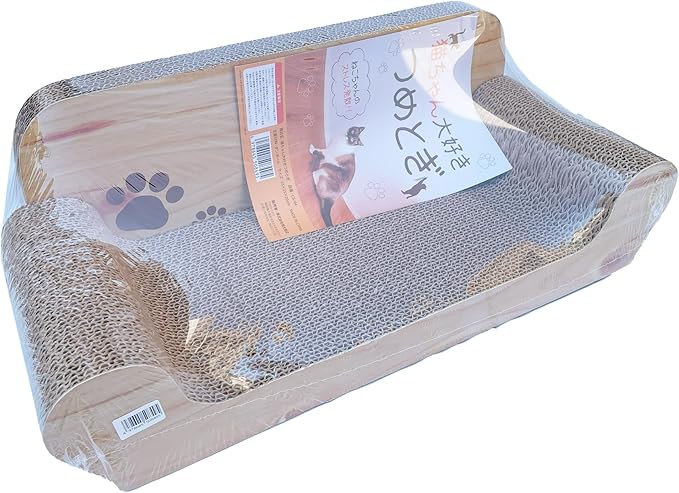 木目調に肉球がデザインされたかわいい段ボール爪とぎ。