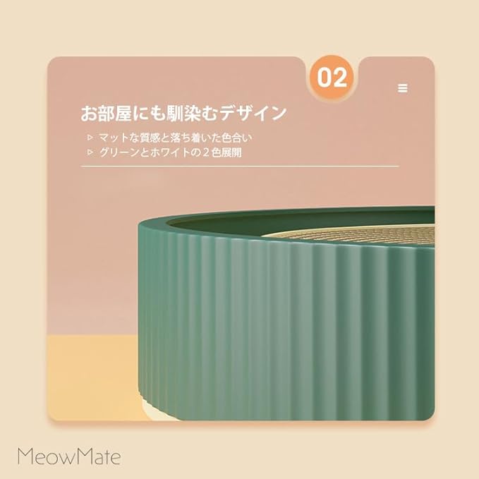 【デザイン】本体カラーはマットなグリーン ベージュのバイカラー。インテリアに馴染むシンプルでおしゃれなカラーリングです。