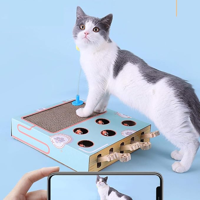 猫モグラ叩きおもちゃ&五つ穴 遊んでも遊んでも飽きない、猫ちゃんが生れ付く狩りの狩猟本能を満たしてくれます普通の猫おもちゃと違って、運動不足とストレスの解消するだけではなく猫の頭脳を鍛える知育もあります
