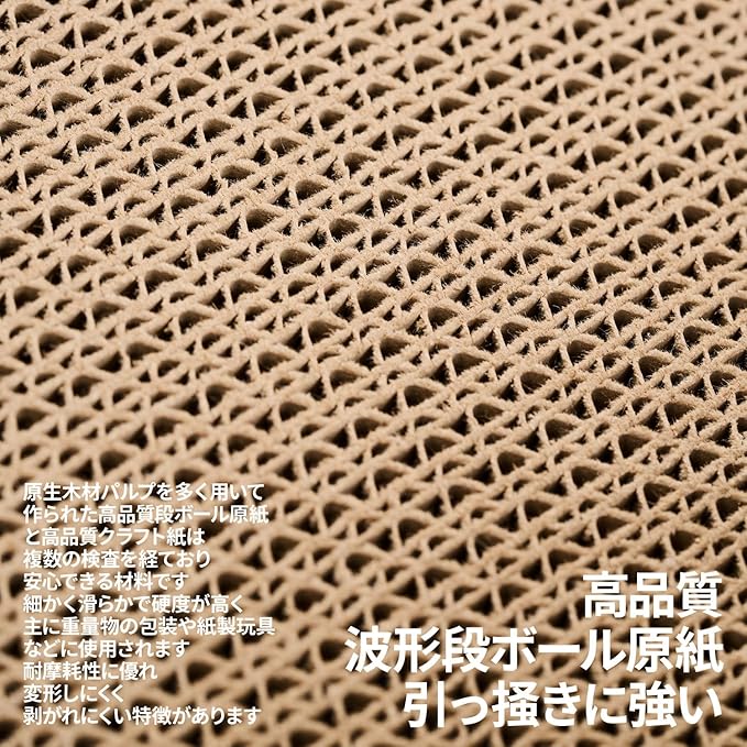 【高品質波形段ボール原紙】引っ掻きに強い:原生木材パルプを多く用いて作られた高品質段ボール原紙と高品質クラフト紙は、複数の検査を経ており、安心できる材料です。細かく滑らかで硬度が高く、主に重量物の包装や紙製玩具などに使用されます。耐摩耗性に優れ、変形しにくく、剥がれにくい特徴があります。