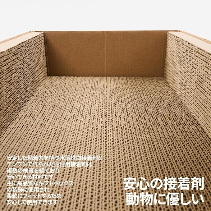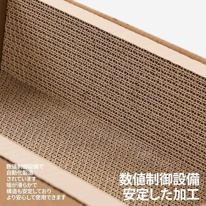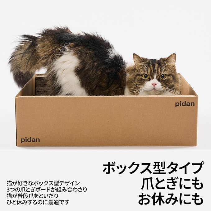 【ボックスタイプ】爪とぎにもお休みにも:猫が好きなボックス型デザイン。3つの爪とぎボードが組み合わさり、猫が普段爪をといだりひと休みするのに最適です。