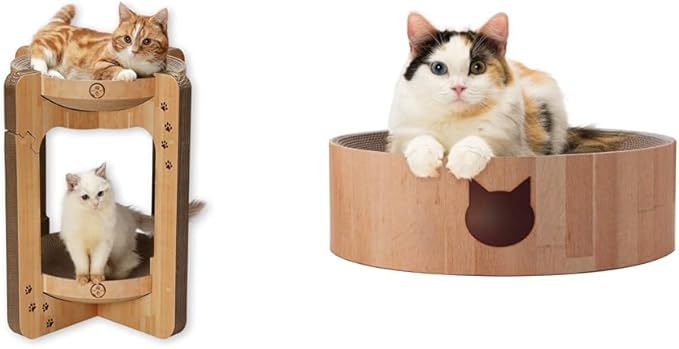 【つめとぎベッドは交換可能&省スペースにも】 つめとぎベッドは、同シリーズの「バリバリボウル交換用つめとぎ2個パック」と同サイズなので、 お気に入りを長くご使用いただけます。 また1つのタワーで2匹分のつめとぎ兼ベッドとして使えて、省スペースにも。
