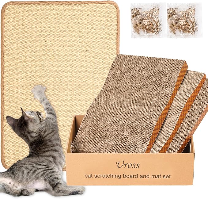 【超お買い得セット】私たちの猫用スクラッチボードセットのセットには、3つの波形猫つめとぎのが含まれています、サイザル麻の猫ひっかきマットと猫じゃらし2袋。