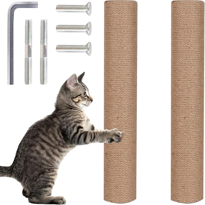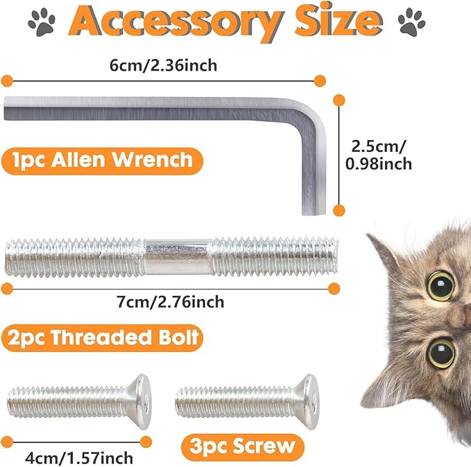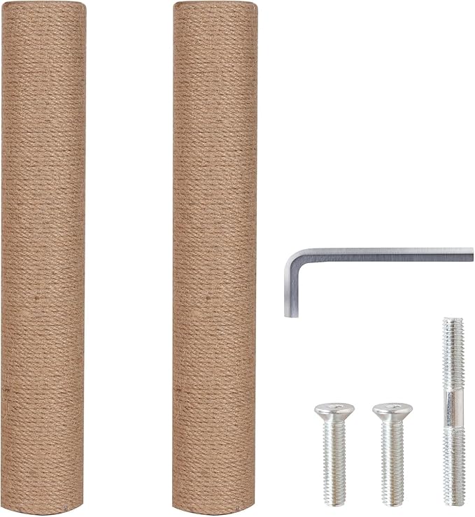 【商品仕様】梱包内容:交換用ポール*2、ネジ*2、ポール組みネジ*1、六角棒レンチ*1。2本の支柱を一緒に取り付けることで、高さが増すだけでなく、猫の機嫌も良くなる。 片方の端が破損した場合は、もう片方の端に回して使うこともできる。