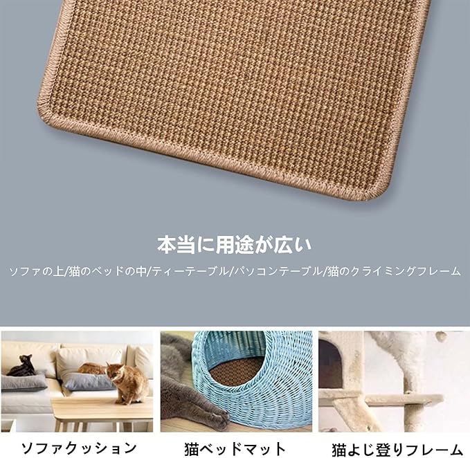 この猫爪とぎマットは、猫ひっかきパッド、プレイマットだけでなく、スリーピングマット、リターマットにもなります。もちろん、玄関マットとしてもお使いいただけます。