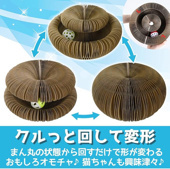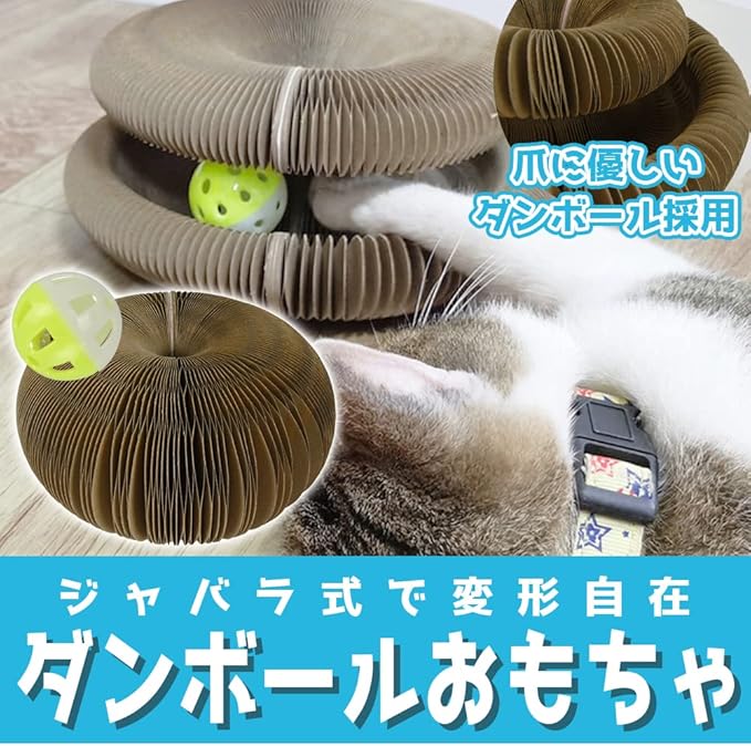 ジャバラ式により全方位が段ボールになるため、あらゆる角度から爪をとげます。遊び 運動の両方を兼ね備えており、運動不足やストレス発散に役立つ便利なアイテムです。