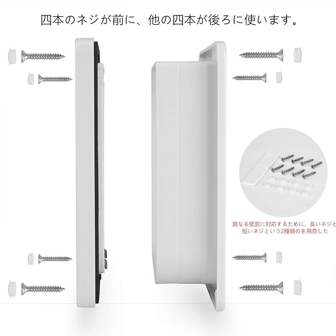 アップグレードのネジセット:異なるドアや壁の厚さに适応するために、1.5cmと3.0cm二種類のネジセットを提供します。この長さのネジが合わない場合、具体的状況に応じてネジをご自分でご用意ください。穴の深さは必要に応じてカットできます。