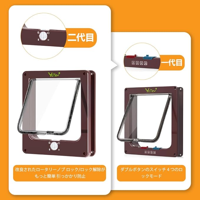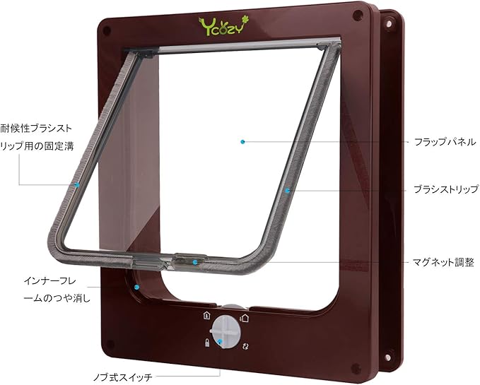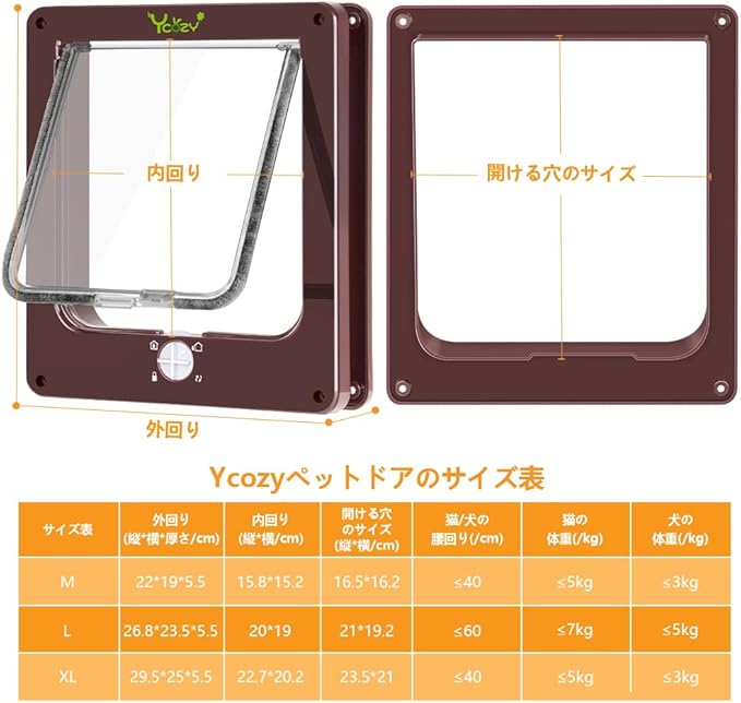 耐候性ブラシ:猫ドアのブラシが雨、風、雪の侵入を効果的に防ぎます。寒さを防ぎ、暖かさを保ちます。通過後も騒音を防止します!バルブの横にがついており、猫が通るとドアが自動に元に戻ります。