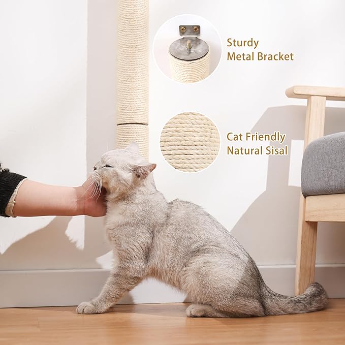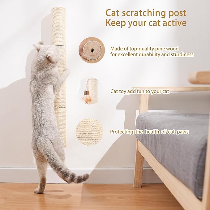 丈夫な自然なサイザル繊維で作られたスクラッチポストは、爪を鋭くして健康に保つのに役立ちます。 また、猫の遊び体験を向上させるために木製の猫のおもちゃを提供します