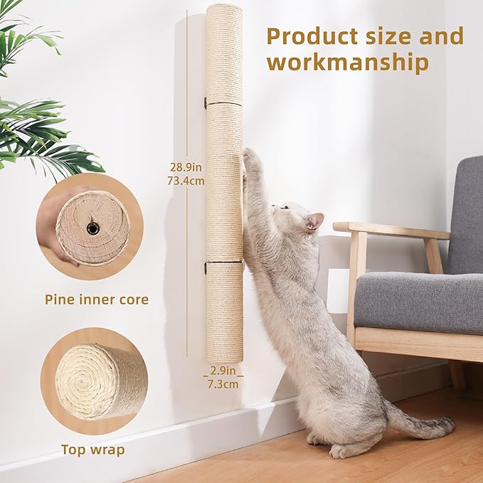 72cmの壁に取り付けられた猫のスクラッチポスト、あらゆるサイズの猫のひっかきと伸びに適した垂直デザイン、家具を損傷から保護する