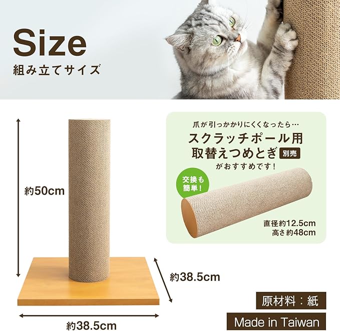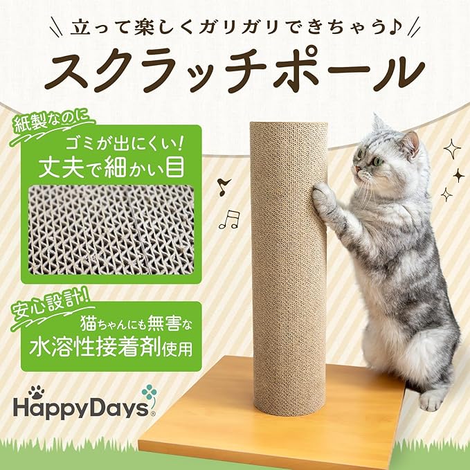 耐久性に優れている段ボールで作られたポール型のつめとぎ
