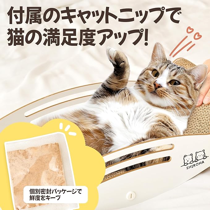 【またたび付きで猫ちゃん大興奮!家具も守れる】 またたびのおまけ付き!またたびをふりかけることで、猫ちゃんの興味を引き、正しいつめとぎ場所へ自然と誘導します。またたびが大好きな猫ちゃんなら、つめとぎタイムがさらに楽しく充実します。家具を猫の爪から守ります。猫ちゃんのストレス解消にぴったり爪とぎです。