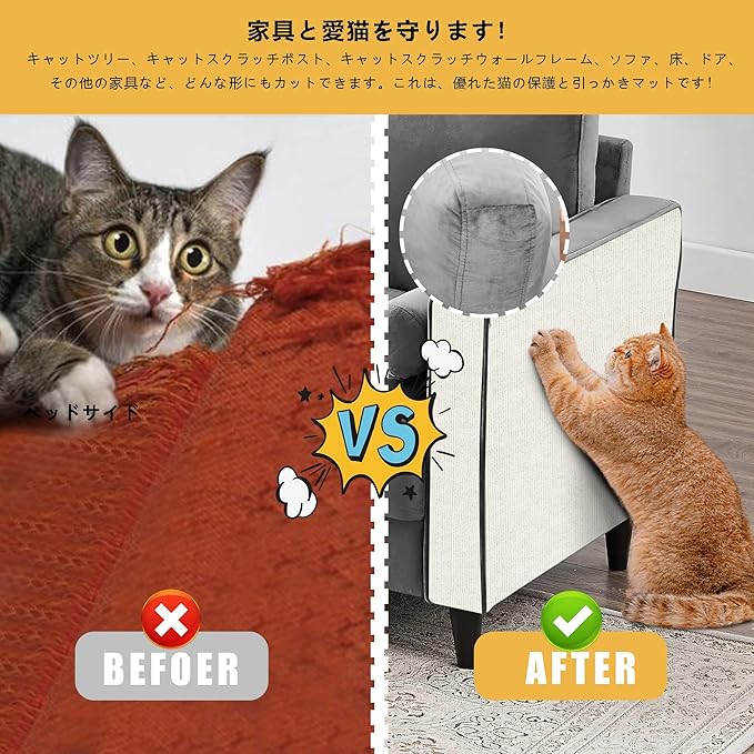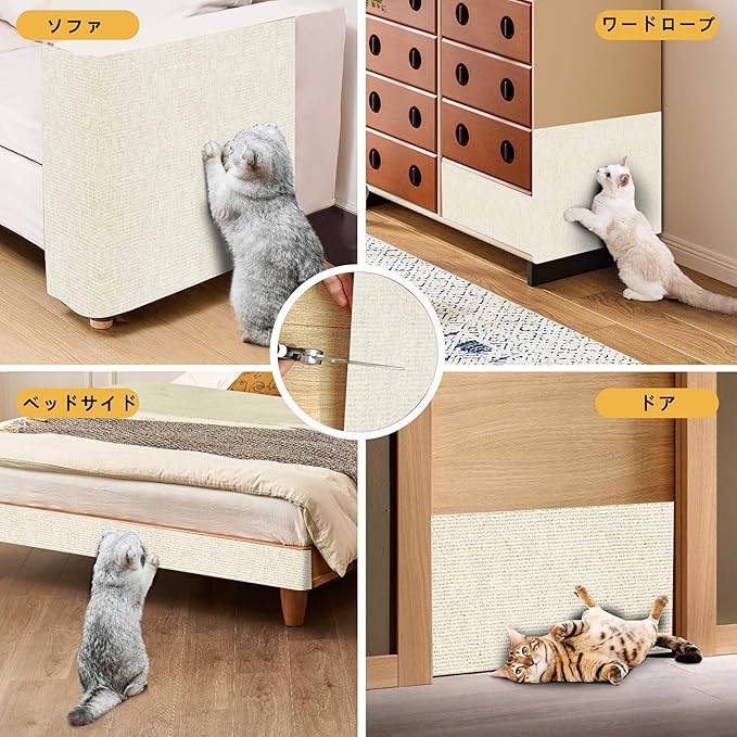 [様々な場所に対応】本製品は様々な場所に使用できます。例えば、壁、ソファ、食器棚、洋服ダンスなど、猫が爪とぎをしやすい場所に。