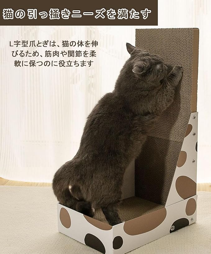 【スペース節約設計】L字型のキャットスクラッチャーのデザインは巧妙で、壁に立て掛けることができるだけでなく、ソファや椅子の横に置くこともできます。猫にストレッチやリラックスのスペースを提供するだけでなく、場所を取り過ぎません。