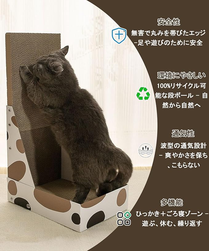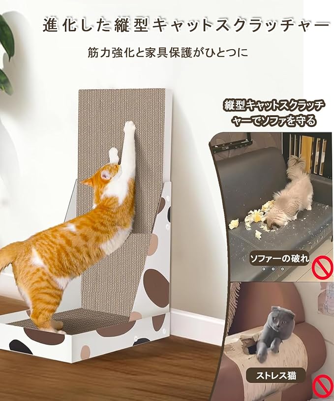 【家具保護】キャットスクラッチャーは猫が本能的な欲求を満たすだけでなく、家具を保護するのに役立ちます。猫がカーペット、カーテン、さまざまな家具に爪で傷をつけるのを防ぎます。キャットスクラッチャーを適切な位置に置くことで、猫のニーズを満たすだけでなく、貴重な家具も守ります。