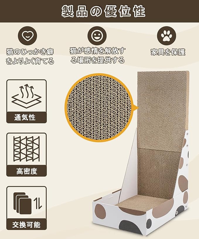 【ペーパーコレクションデザイン】独自の設計の紙製の箱は、猫がクローを研ぐ際に生じる廃紙を効果的に収集し、床に散らばるのを防ぎます。あなたの家をいつも清潔に整頓されているように保ちます。