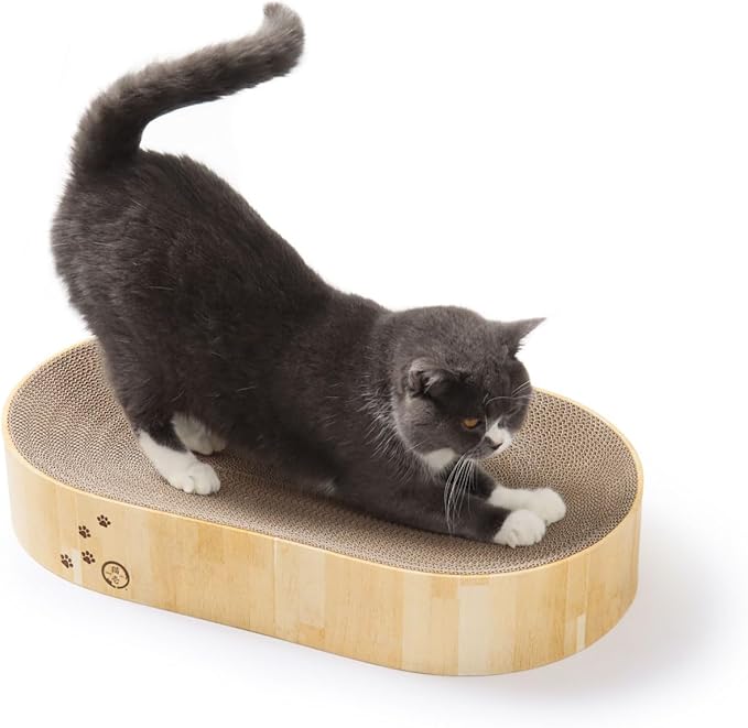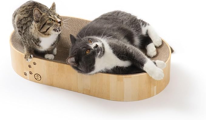 【大人気バリバリボウルが”横長”に】からだフィット形状のつめとぎベッドとして、猫から大人気のバリバリボウルの“オーバル”タイプです。つめとぎベッドはレギュラーサイズ比、約1.5倍でたっぷりつめとぎを楽しめます。