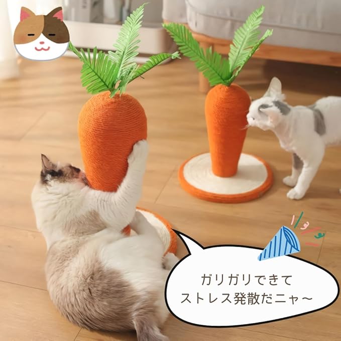 【爪とぎに夢中】引っ掻く、噛む、じゃれる!ネコちゃんのストレス解消にGOODな商品です。爪とぎはネコちゃんにとってはとても大切ですよね♪ 人参型の可愛い爪とぎです。