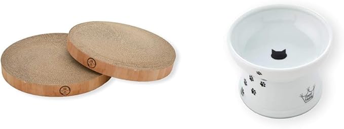 【セット買い】猫壱(necoichi) バリバリボウル 交換用つめとぎ ネコ用 2個パック ライトブラウン + 猫壱(necoichi) ハッピーダイニング 猫用 脚付フードボウル レギュラー 猫柄 すべり止めシリコン付き | KAZESHOP