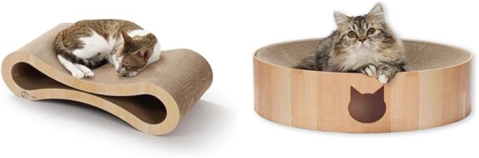 【からだフィット形状】つめとぎ兼ベッド部分はダンボール製。重なりあった薄いダンボールが、土台に沿ってきれいなすり鉢状を作ります。 猫のやわらかいからだにフィットするので、猫がリラックスできます。