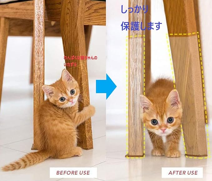 ✅【しっかり保護】室内で飼育のペット(猫、犬等)の爪研ぎ(つめとぎ)、つめ傷、引っ掻き、いたずらによる家具や壁や柱へ傷、摩耗、汚れ、マーキングなどを防止する保護シートです。水に強い為、マーキング後のお掃除や、猫の嫌いなにおいの塗布などの対応も可能です。