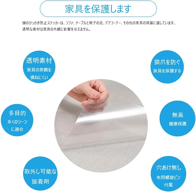 猫用 爪とぎ防止シート 4枚セット 固定ネジ付属 ソファ 猫 つめとぎ防止 ステッカー 引っ掻き傷 爪とぎ 汚れ防止 透明 ツメ傷 保護シート PVC製 アンチスクラッチ 粘着タイプ 壁 柱 家具 保護 しつけ用 爪研ぎ防止シート ネジセット 傷防止保護ステッカー (L) | KAZESHOP