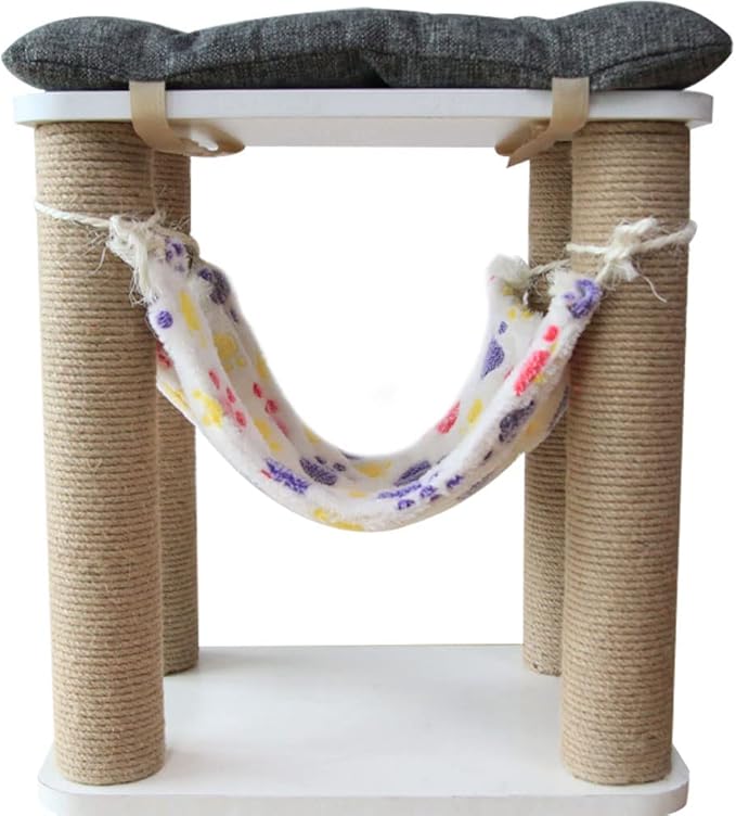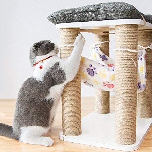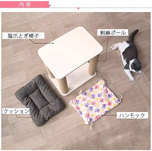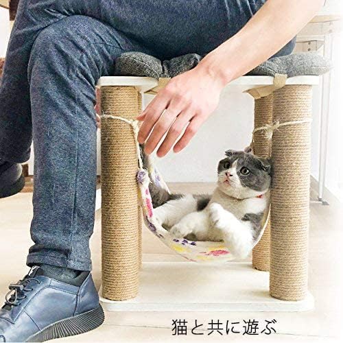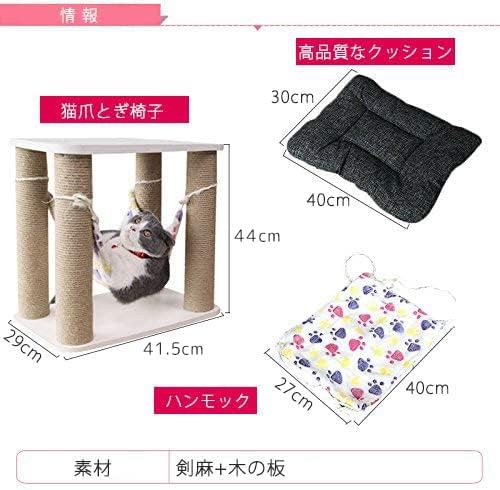 健康な爪とぎ:この猫爪とぎの腰掛けは4つの大きい爪とぎポールがあって、猫たちはきっと大喜びます。この猫爪とぎポールすべては丈夫な剣麻縄で作られましたので、長持ちします。