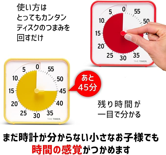 集中した時間を作りたい時や、時間をキッチリ決めて行動したい時に活躍するTimeTimerは、時計が読めない子ども・時間管理が苦手な子供や発達障害の人・時間を有効に使いたい大人まで、あらゆる人の時間を管理してくれる見えるタイマーです。