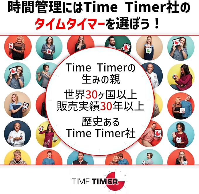 世界30ヶ国以上、販売実績30年以上の歴史あるTime Timer社のオリジナル タイムタイマー。時間管理にピッタリ! お子さまの学習用アラームに、職場でのタスク管理に、キッチンタイマーとして、スクールタイマーとして、などマルチに活躍します。