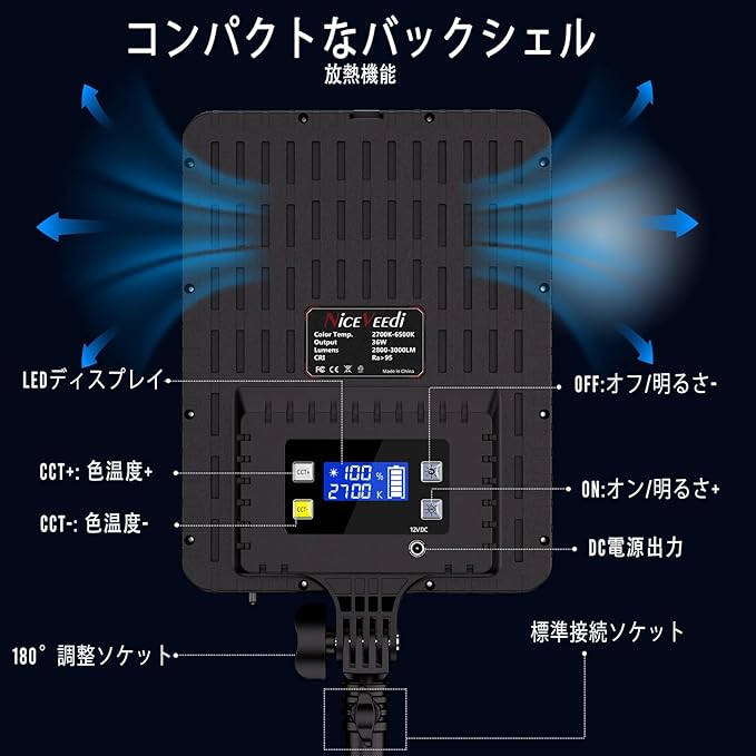 NiceVeedi 撮影用ライト 2パックLEDビデオライト 36W二色 調整可能 2700-6500K CRI 95+、スタジオプロ撮影ライト カメラライト リモコンと遮光板付き 撮影 照明/ビデオ録画/プロ写真スタジオ撮影/YouTube/商品撮影に適用 | KAZESHOP