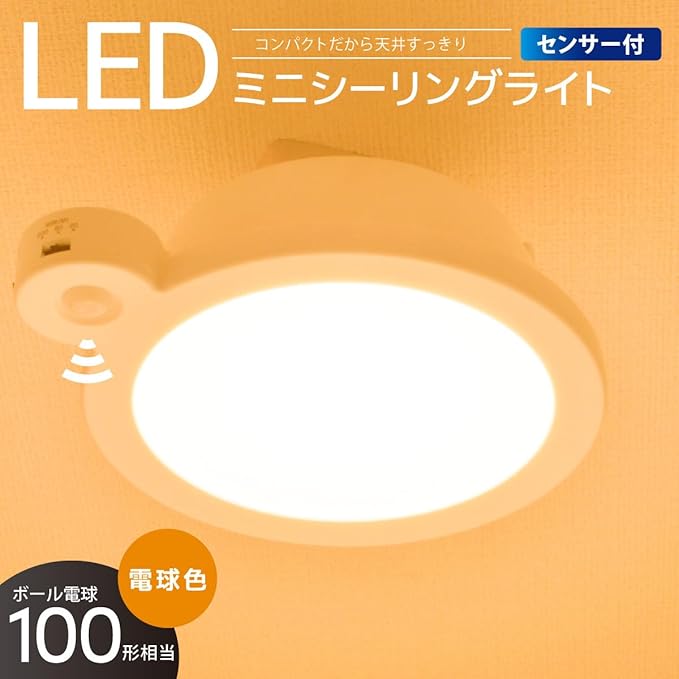 オーム電機 シーリングライト LED センサー ミニ 人感センサー 明暗センサー 廊下 階段 トイレ 内玄関 クローゼット 洗面所 LEDミニシーリングライト 100形 1400ルーメン 電球色 LE-Y14LG-W-PIR 06-5511 OHM | KAZESHOP