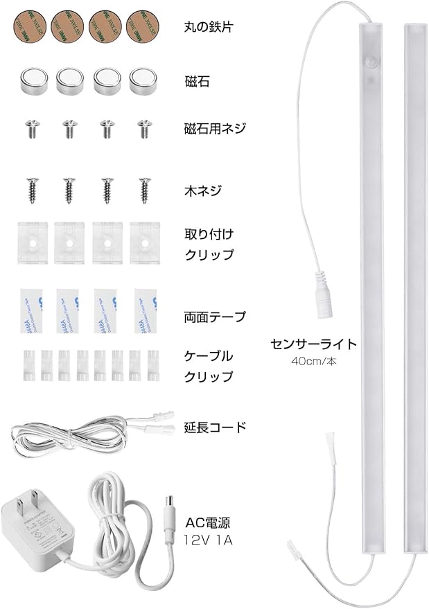 Monoc LED 人感センサーライト 40cm バーライト 金属 連結可能 明るい コンセントに接続 スリム 薄型 AC電源付き マグネット 貼り付け 室内/キッチン/棚下/台所/クローゼット/トイレ/玄関(昼光色/6000K) | KAZESHOP