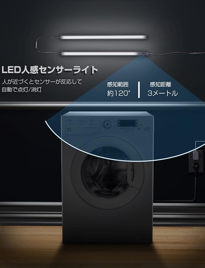 【自動点灯・自動消灯】人感センサー搭載して、120度以内で3メートル以内の動体検知してライトが点灯し、約30秒後に動体が検知されない場合は自動に消灯します。
