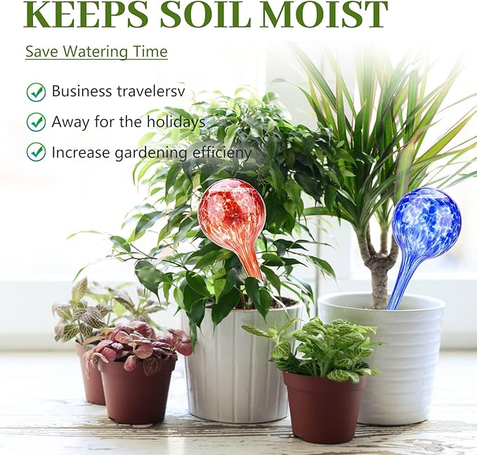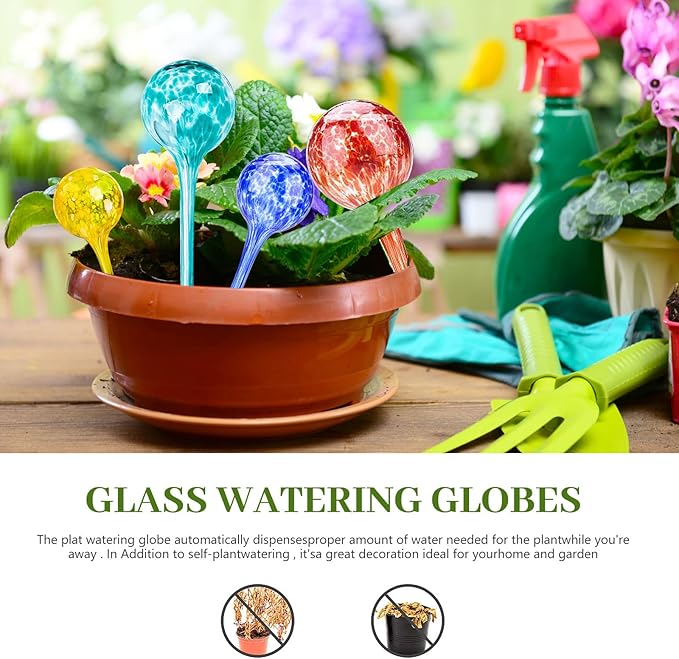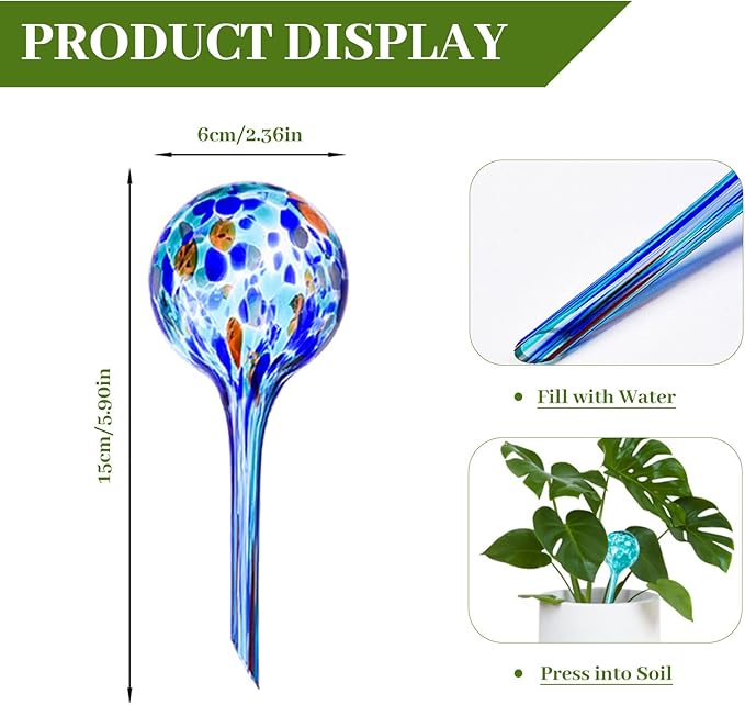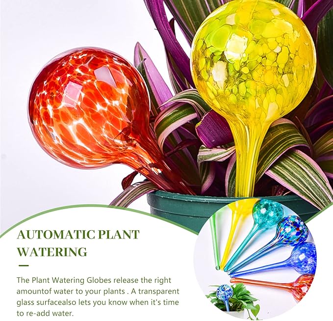 【自動鉢植え植物給水器】超耐久性の手吹きステンドグラスで作られたこの植物用ウォーターグローブは、室内、屋外、ハンギング、地上の植物に水を与えることができるだけでなく、あなたの家や庭に美しいタッチを追加することができます。