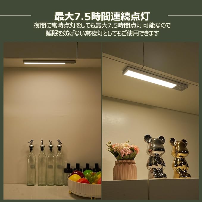 ⭐【超薄型で多場所適用】長さ300*幅42*厚み12mmのコンパクト仕様で、設置後も場所を取らずに控えめに配置することができます。クローゼットをはじめ、寝室、玄関、階段、廊下、地下室、食器棚、ガレージ、倉庫、戸棚など、さまざまな場所で使用することができます。