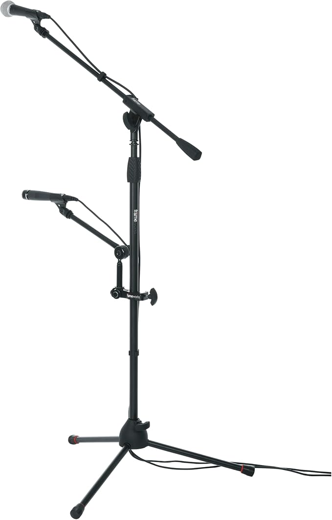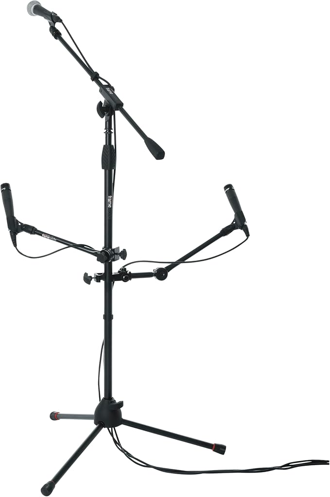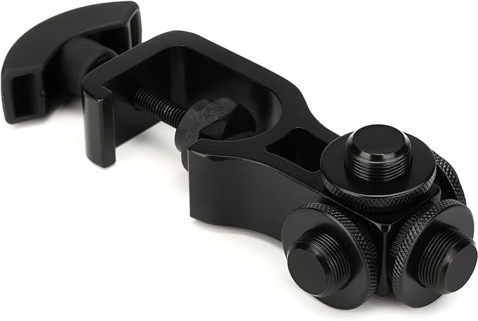 US規格(5/8")のネジに対応したマイクブーム、マイククリップ等、最大4つのアクセサリーを追加できるスタンドマウントホルダー
