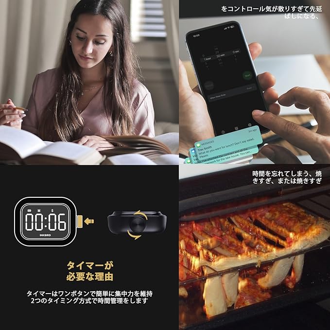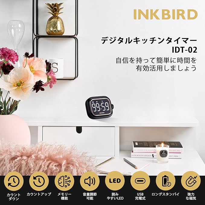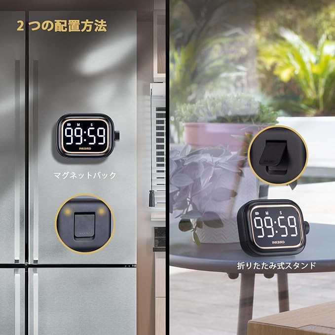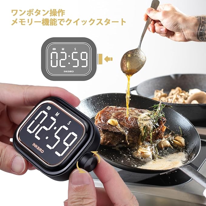 INKBIRD キッチンタイマー タイマー 勉強タイマー コンセント タイマー キッチンタイマー マグネット付き勉強 タイマー デジタルタイマー カウントアップ/カウントダウンタイマー 大型バックライトLED付き ボタン一つ操作 USB充電式 ECOモード ストップウォッチ ポータブルタイマー ジョギング ヨガ 会議 勉強 読書 料理用 タイム タイマー消音 IDT-02 (黒) | KAZESHOP
