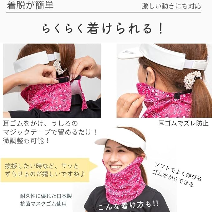 顔や首の日焼け防止(UVカット率98%以上の機能性生地使用)シミのできやすい頬部は生地が二重!
