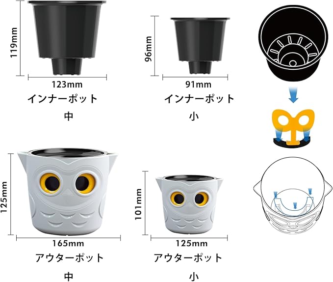 仕様:アウターポットは125 * 101 mmで、150 mlの水を入れることができます。インナーポットは91* 96 mmで、ほとんどの屋内植物を植えることができます。
