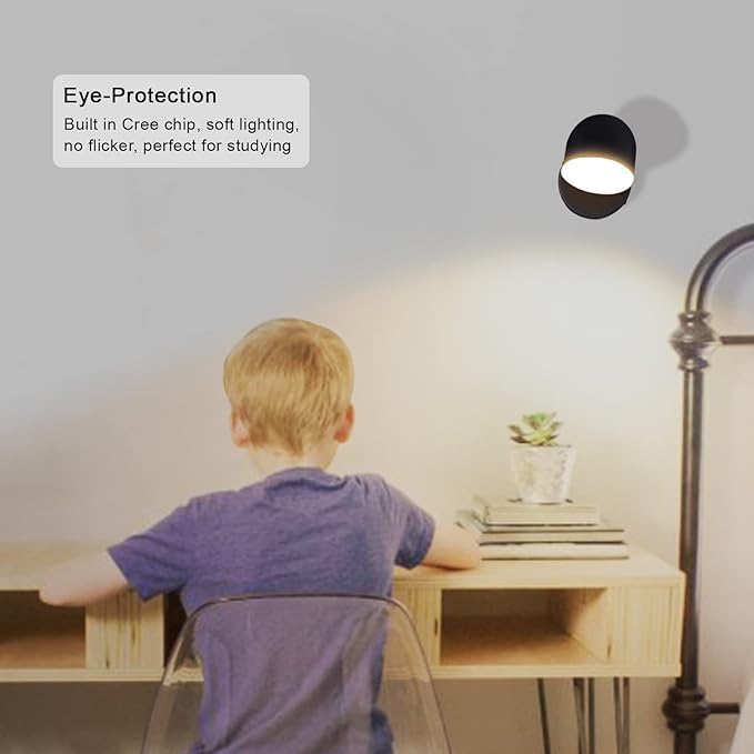 【自由回転式LED読書灯】-ランプヘッドは水平方向に350 、垂直方向に90 回転して調整することができます。この調節可能なウォールランプは、寝室全体を照らすことなく、あなたのパートナーや周りの子供の残りの部分に影響を与えることなく、あなたが読むために読書ページ上の照明領域を生成します。