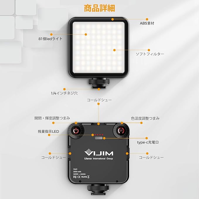 VIJIM VL81 ledカメラビデオライト Type-C充電式 3000mA小型 補助照明3200K-5600K CRI95 + 2色調光可能3つコールドシュー DJI Osmo Pocket Action Mobile 3 Gopro Hero 8/7/6/5 iPhone Samsung Canon Nikon Sony ミラーレスカメラ/美容化粧/YouTube生放送/ビデオカメラ/デジタル/一眼レフカメラ撮影用 | KAZESHOP
