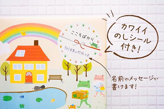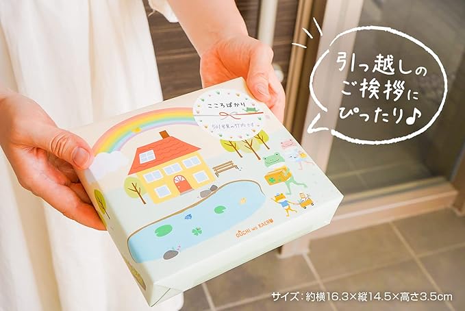 サイズは横16.3 縦14.5 高さ3.5cmとほどよい大きさです。今だけかわいい「のしシール」付き!ごあいさつのメッセージが書けるので便利かつ、さりげない心遣いで喜ばれます!シールを使わなくても十分可愛いので、シールだけ後で使用することもできますよ♪